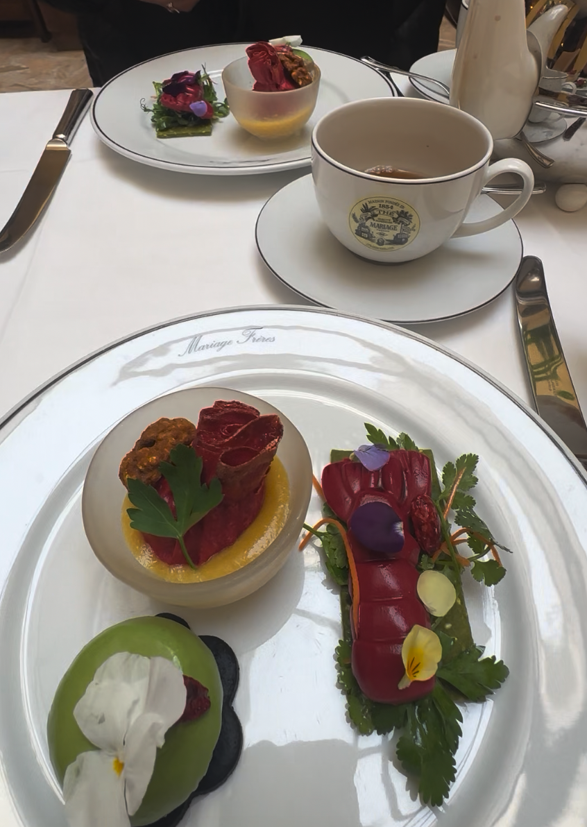 There is an intriguingly timeless elegance when lunching at Le Café Marly, and after spending four hours in the Louvre it was time to recharge with a meal and a glass of wine. Their lobster salad was incredibly delicious; a frisée lettuce, chilled lobster, avocado, and shallots with a wonderful creamy dressing. I attempted to jot down the ingredients by taste, there was either buttermilk or Greek yogurt, herbs, lemon and a touch of Dijon.