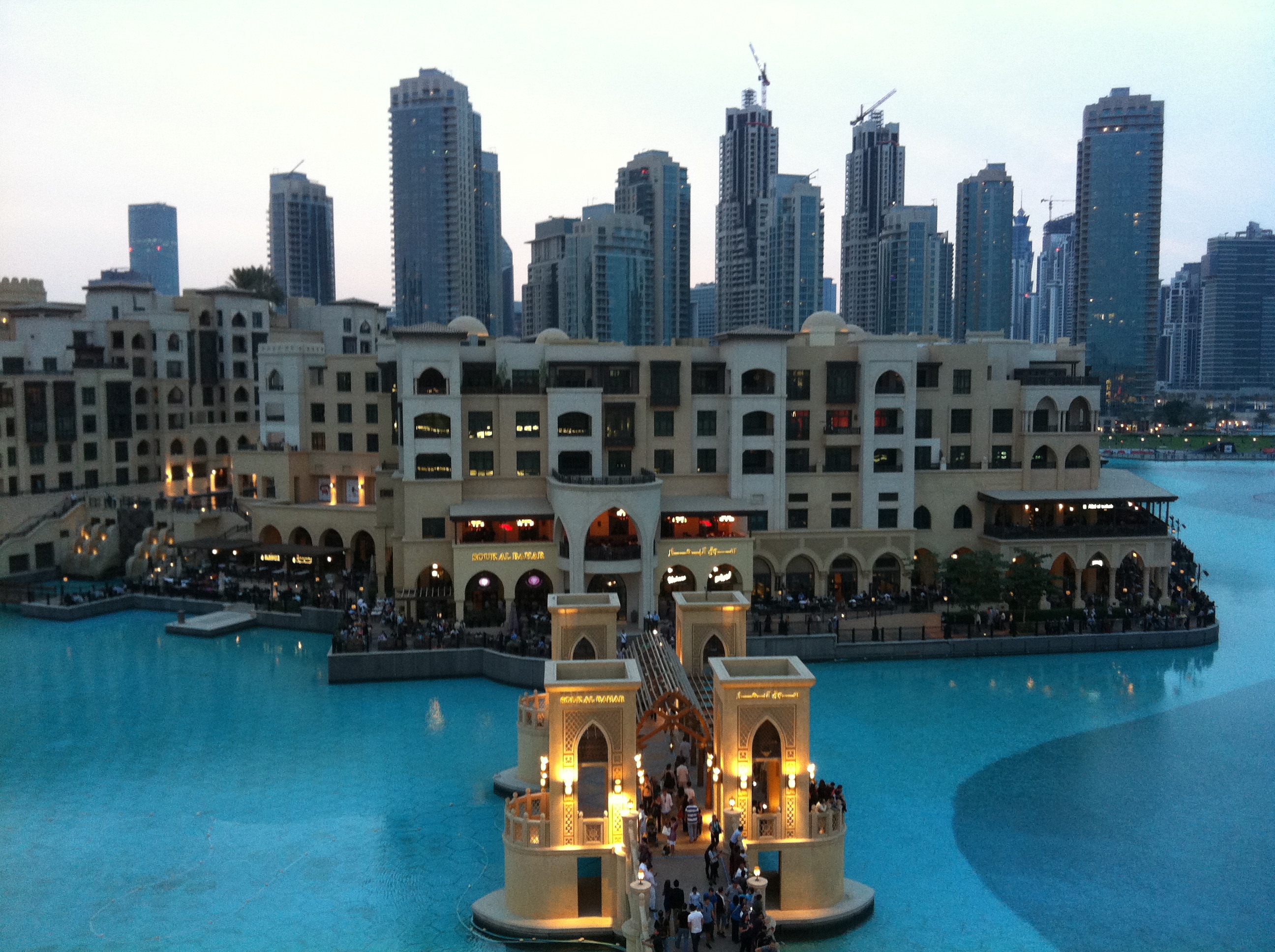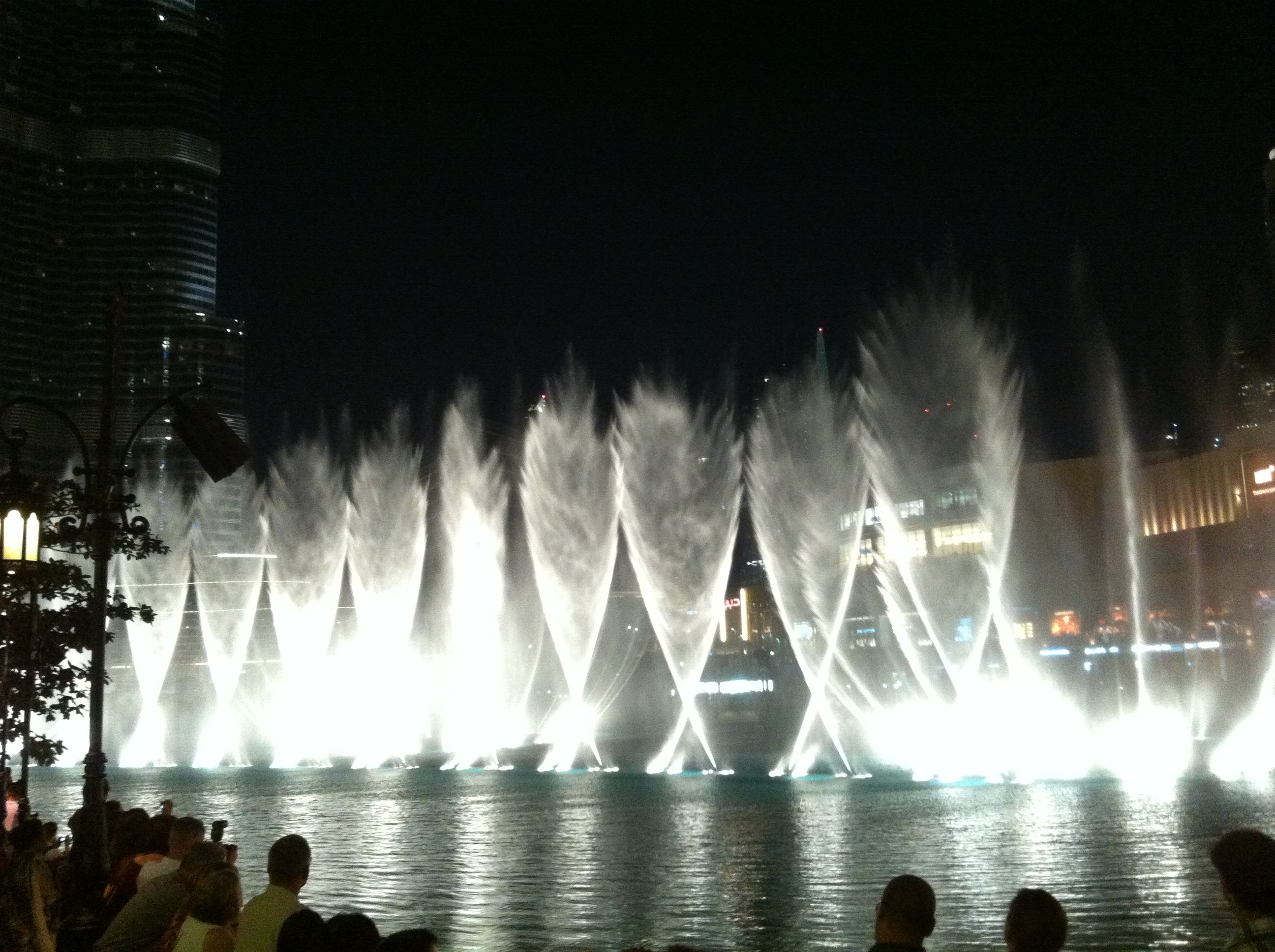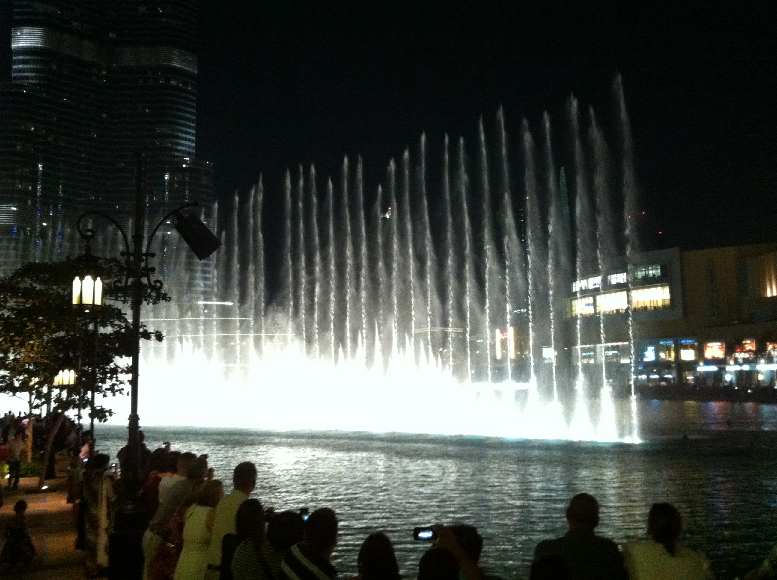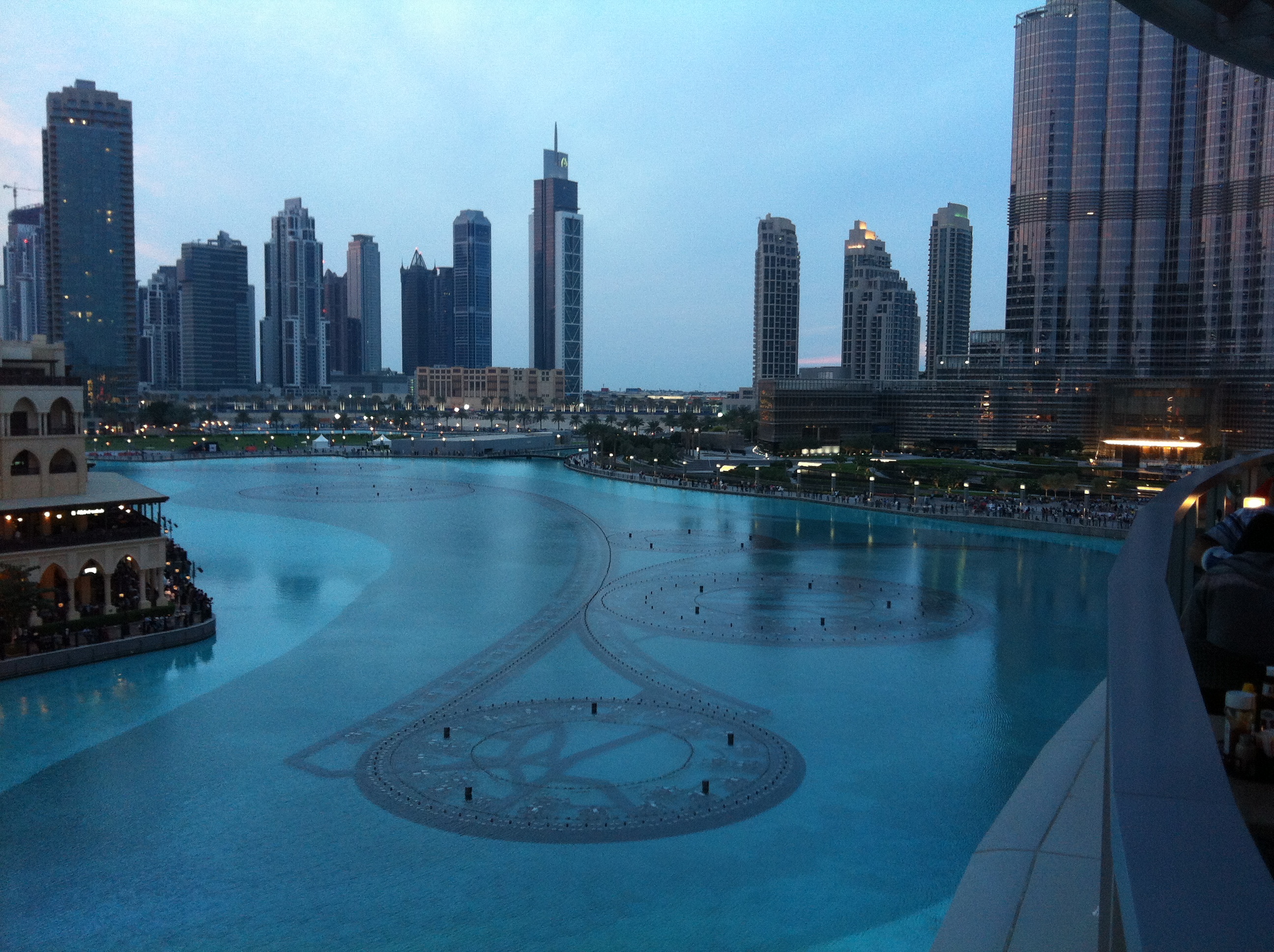 {Views of the Dubai Fountains at the Marina from the Dubai Mall}