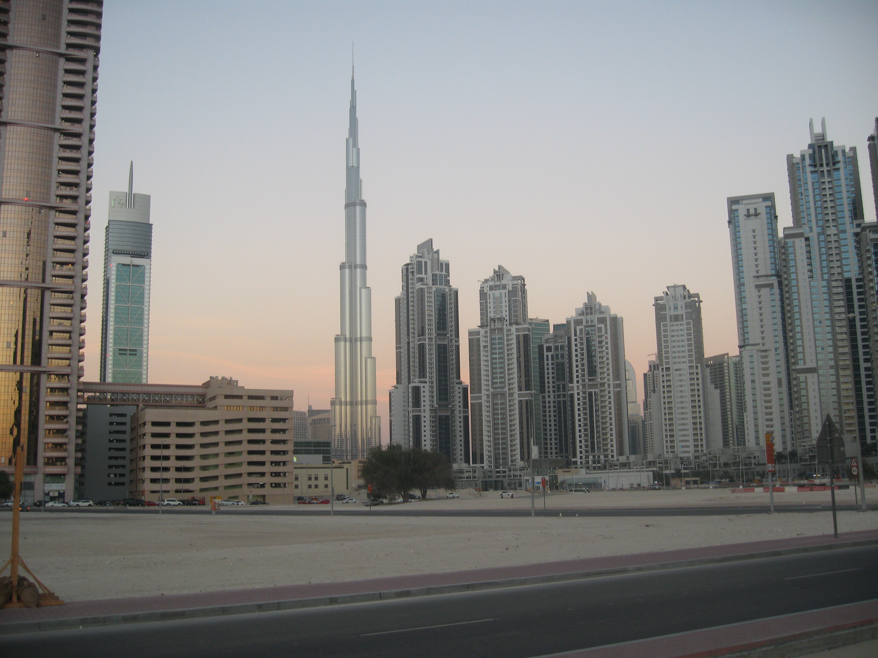 {The Burj Khalifa from off of Sheikh Zayed Road and Business Bay}