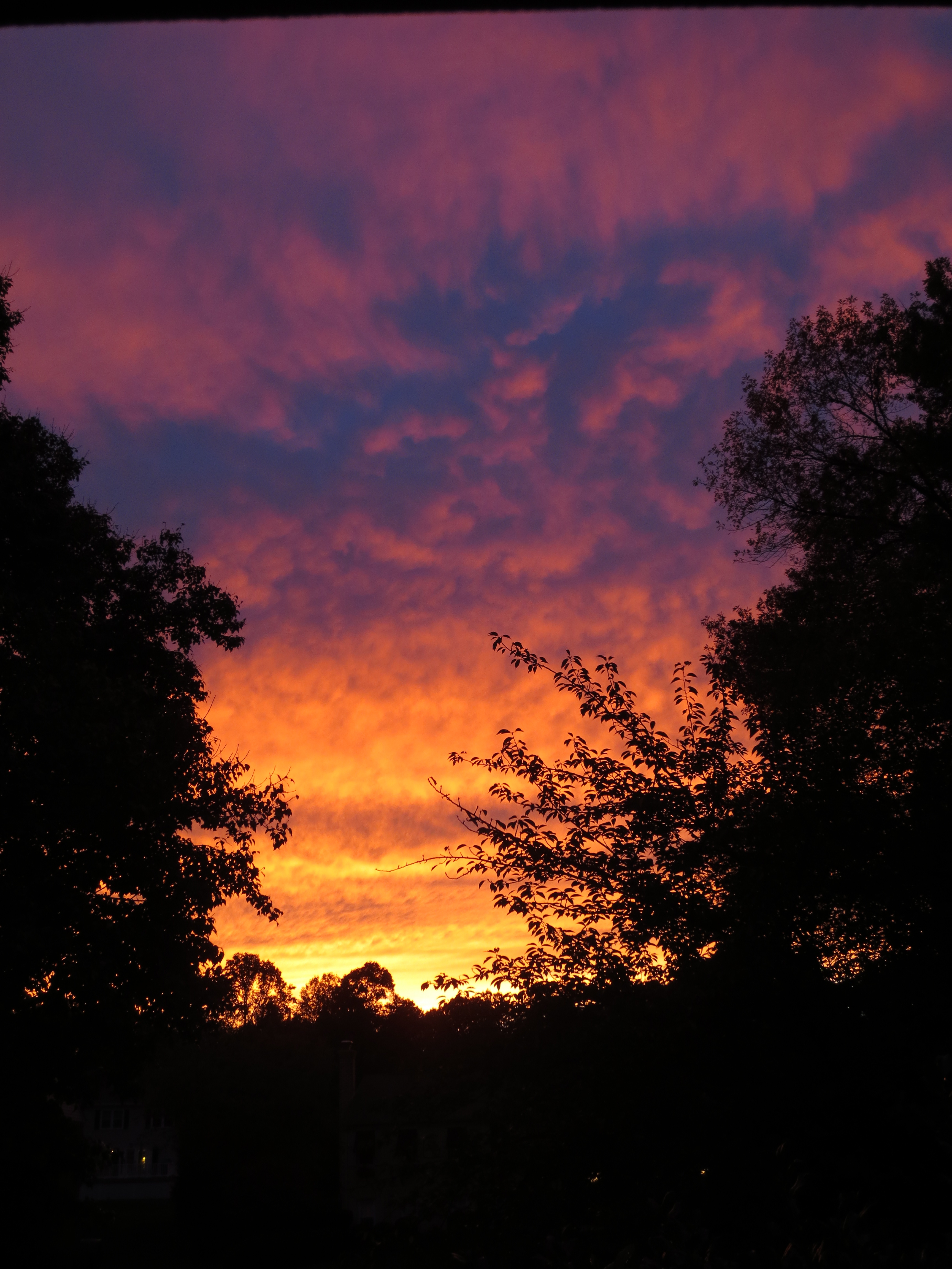 I wanted to share these awesome pictures of our sunset taken yesterday evening after dinner. The Mid-Atlantic was caught in drenching, windswept rain from a cold front that moved from the west and merged with lingering moisture of Tropical Storm Karen. Alerts were being sent very early in the day to warn of possible flooding and tornados.