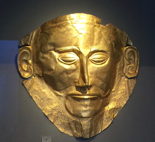 This death mask made of thin gold is a symbol of kingly immortality, and is the first item found by Schliemann in the Mycenaean shaft graves, which dates from 1150-1500 BC. Schliemann sent a telegram to the king of Greece saying “Today, I have looked on the face of Agamemnon”.