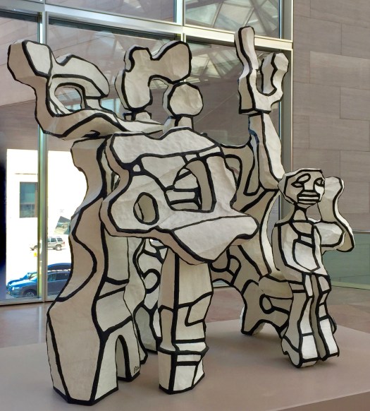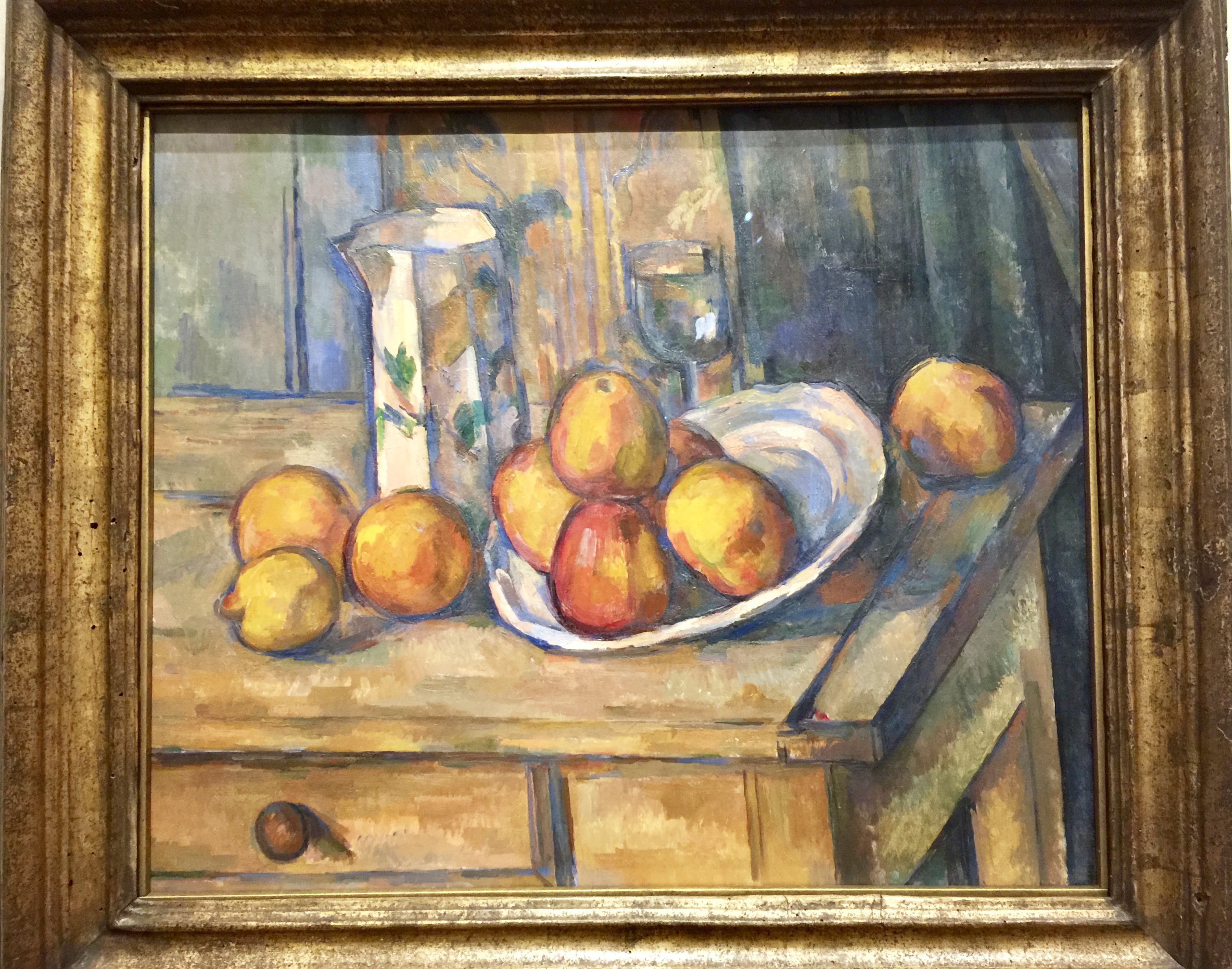 This sculpture by Jean Dubuffet is called Site a l’homme assis; 1969-1984, made of polyester resin. And, this gorgeous oil on canvas by Paul Cezanne called Still Life with Milk Jug and Fruit c. 1900 still projects an extremely bright palette.