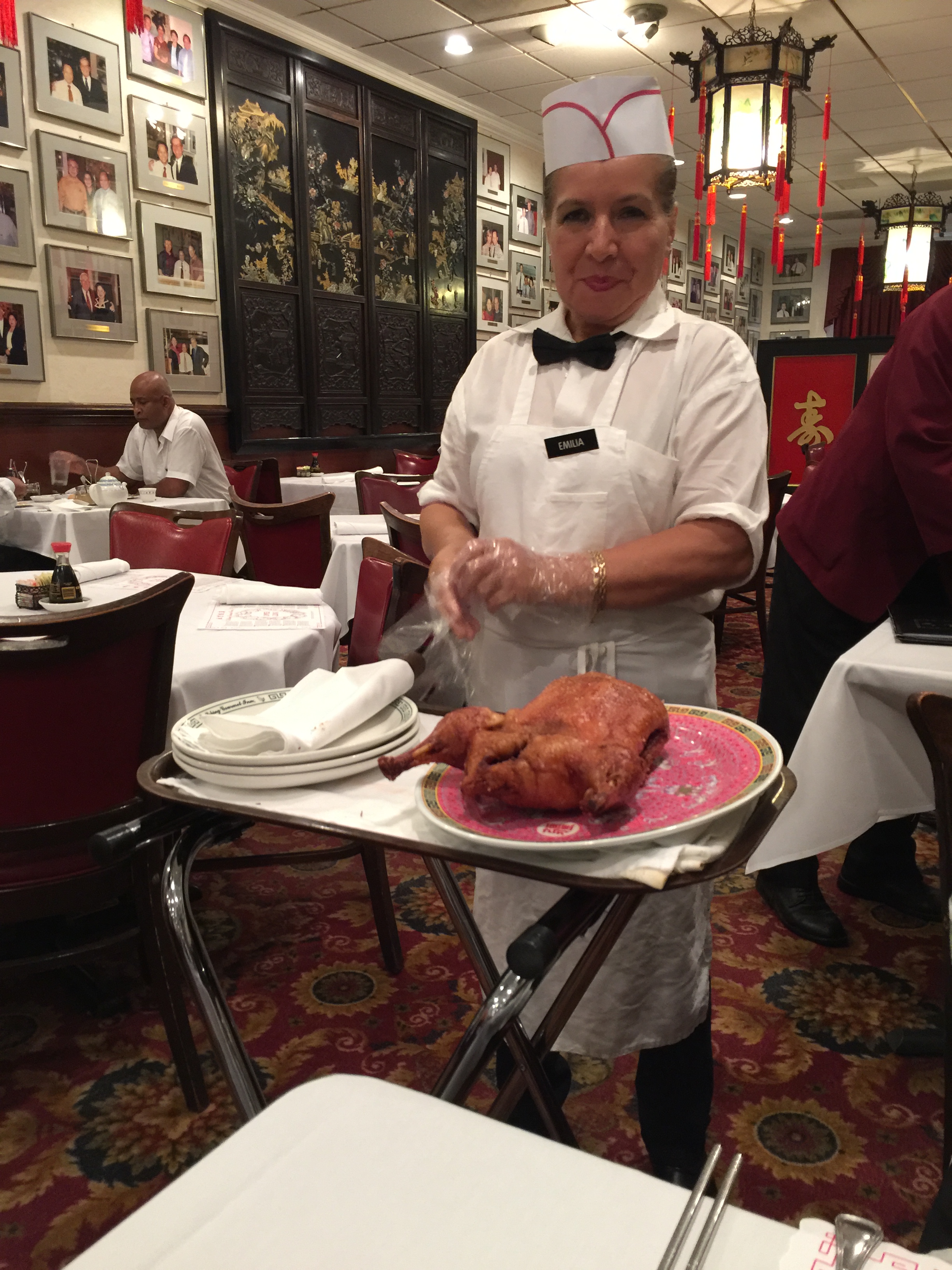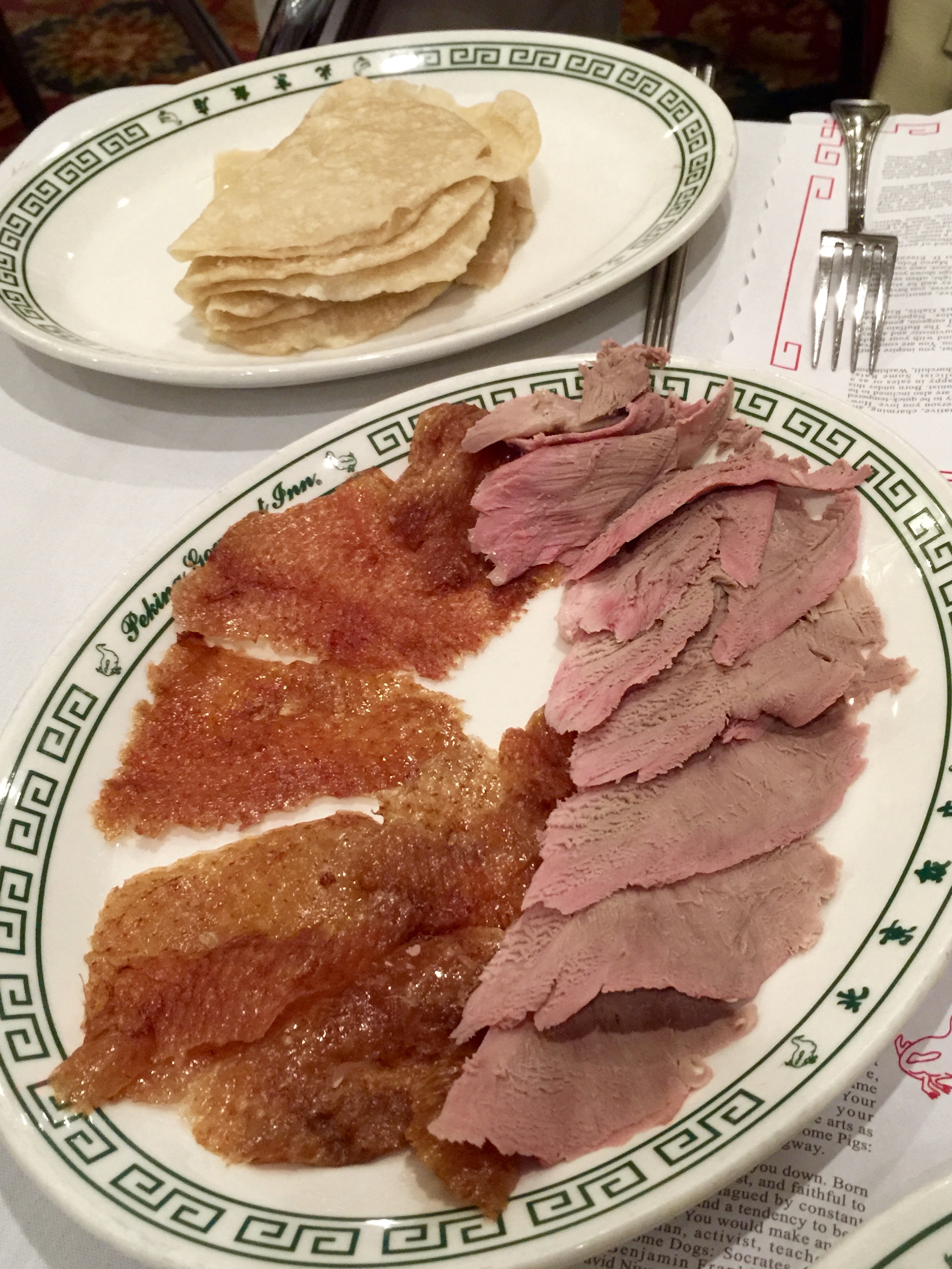 {Duck served traditionally at our table by the chef at Peking Gourmet Inn in Falls Church, VA}