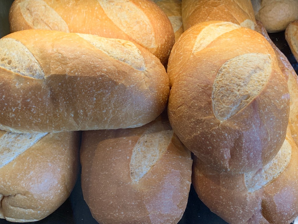 Loaves of sourdough bread drying out for dressing.