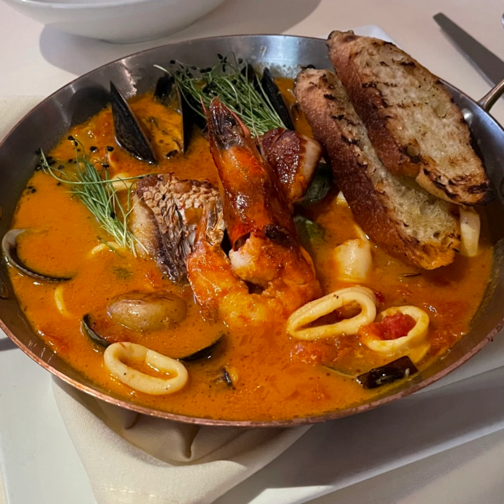 Bouillabaisse is a Provençal fish soup with a tomato base, and while there’s no strict formula, I love this hearty seafood soup that contains a variety of seafood, shellfish and lots of garlic.