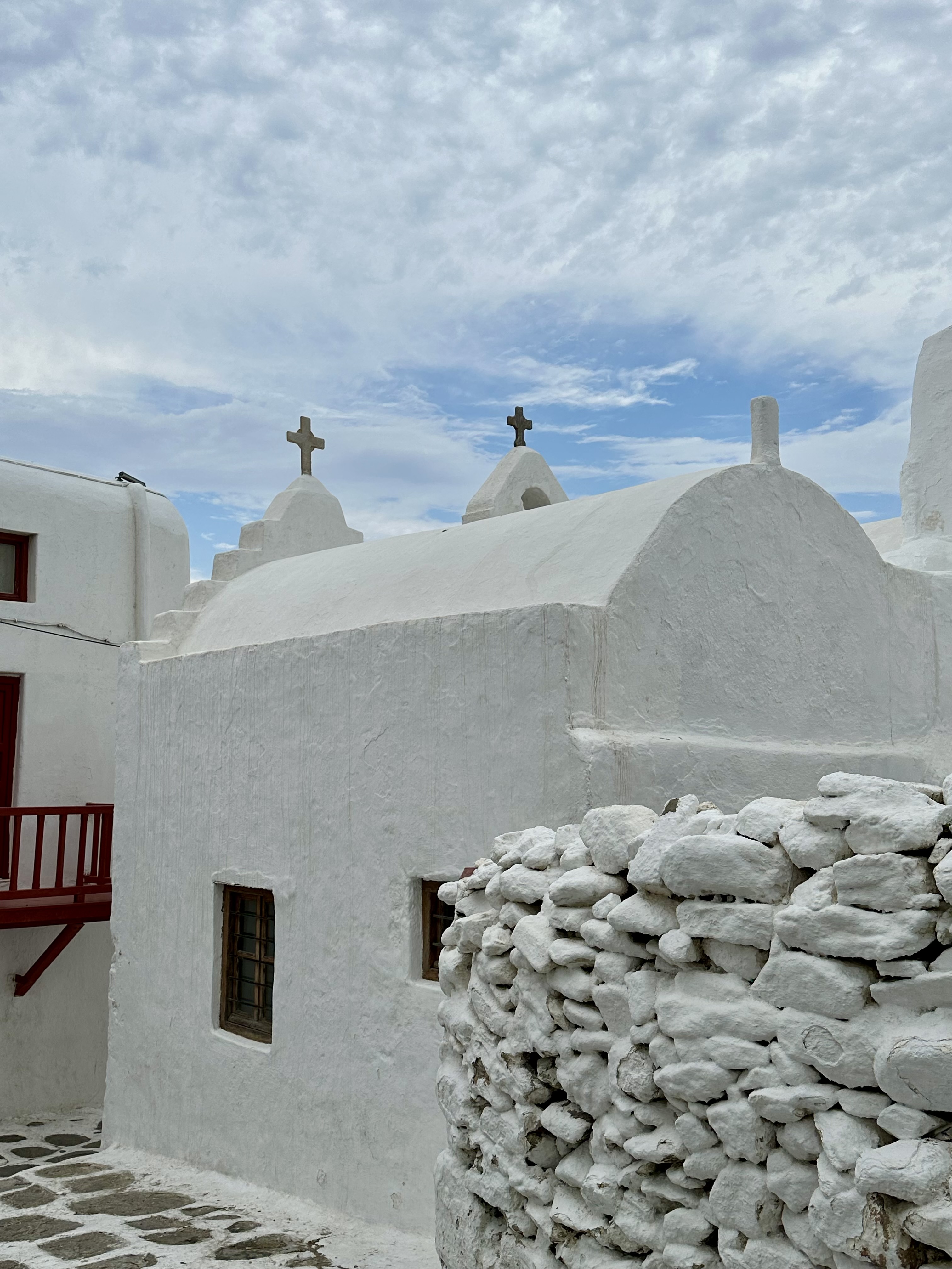 Lunch was at Eva’s Garden hidden in the heart of Mykonos; a family run restaurant. We ordered meze’s, salads and a few appetizers to share over a bottle of wine. These simple Mediterranean dishes created a most elegant meal.