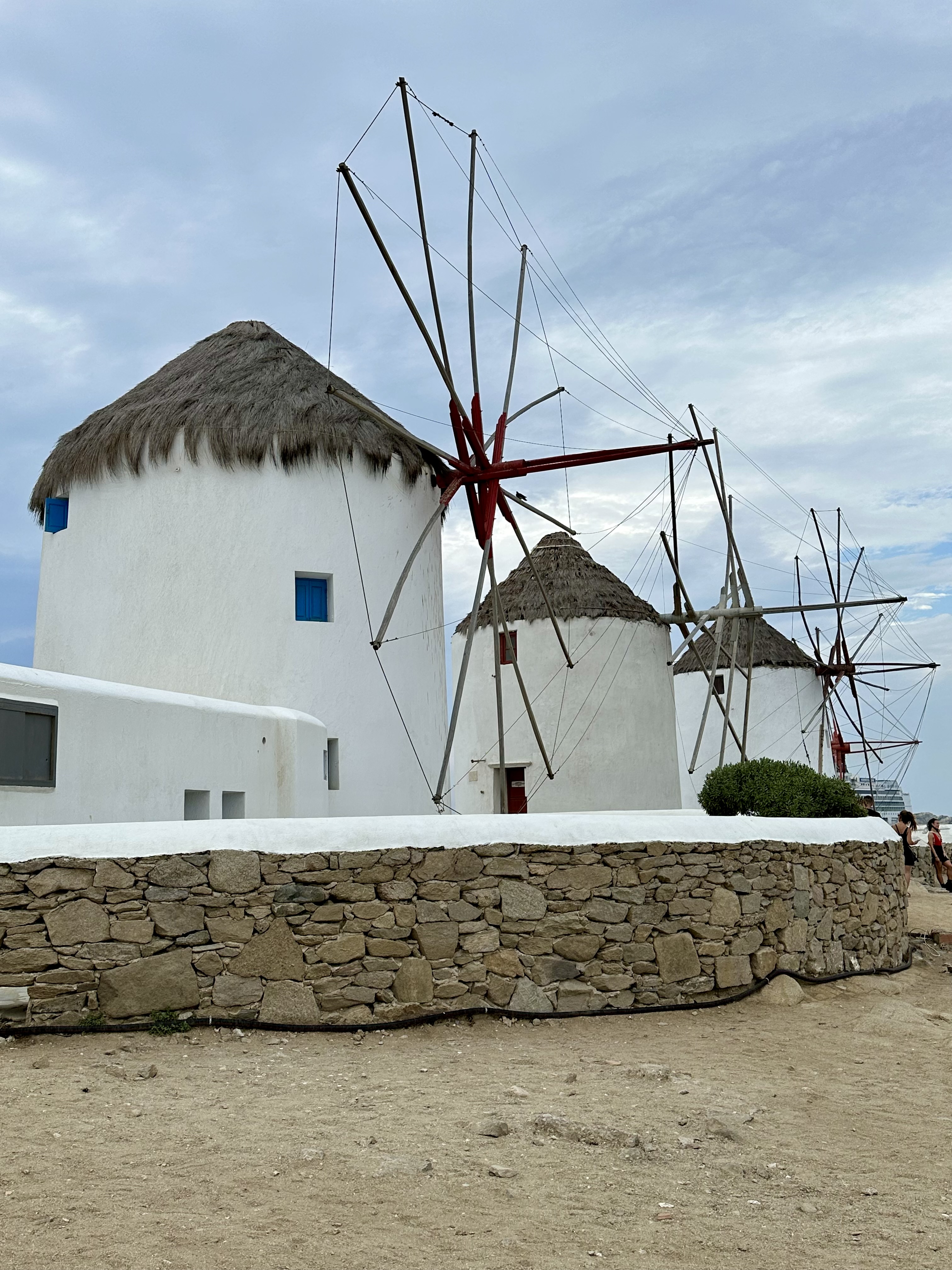 Mykonos located in the heart of the Cyclades is an island in the Aegean Sea. While exploring the narrowly paved streets you’ll see white-washed houses, restaurants, shops that sell local products along with boutiques. It has been 23 years since I was last in Mykonos, and vividly remembered the Windmills situated on the highest point of town overlooking the sea …… along with its many cats! The windmills also referred to as Kato Mill can be seen from every point of the town.