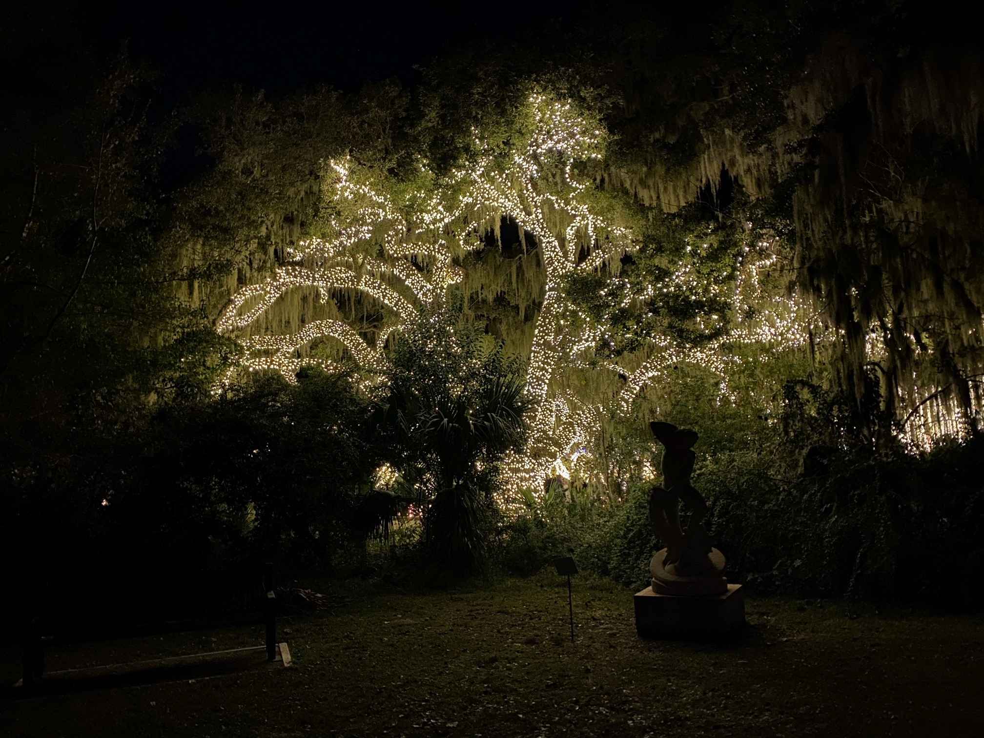 Stylish Heath contributor Tony Sanchez and few friends took a warm Thursday evening last week to drive and see the holiday lighting at Brookgreen Gardens in Murrells Inlet, SC. Upon arriving you may procure a warm cup of cider, cocoa, or wine to sip while walking the garden pathways listening to the sounds of holiday music. Carolers singing amid the soft glow of candles and lights that decorate trees and shrubs, setting the festive mood for the season!