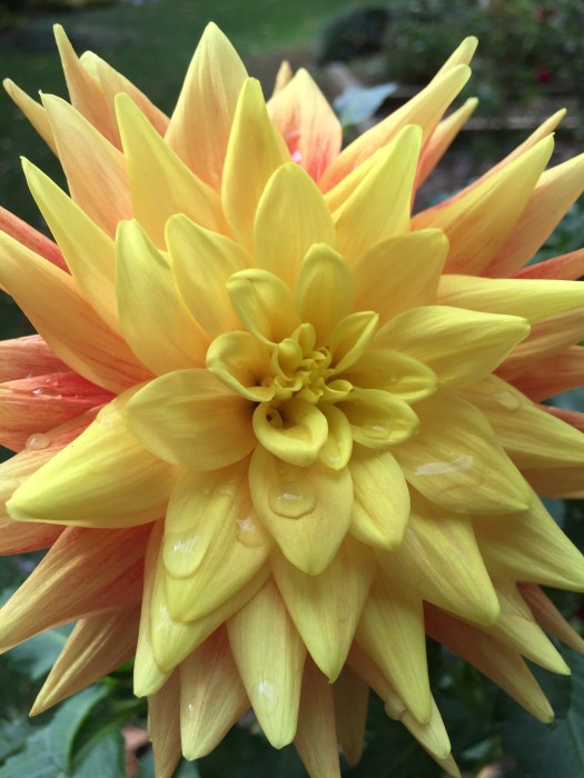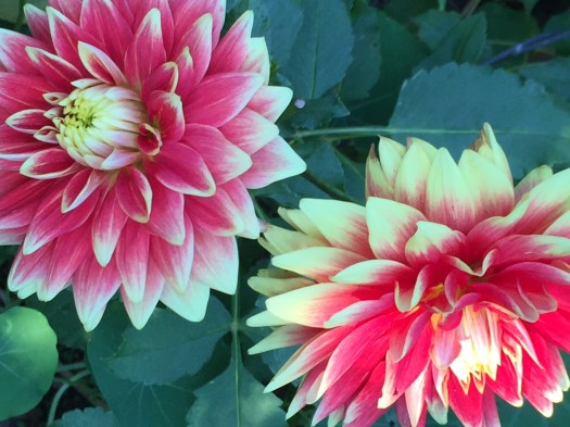{The dahlias are peaking, and climbing to over 6-ft., while intertwining with the pumpkins the garden is bursting with blossoms!!
