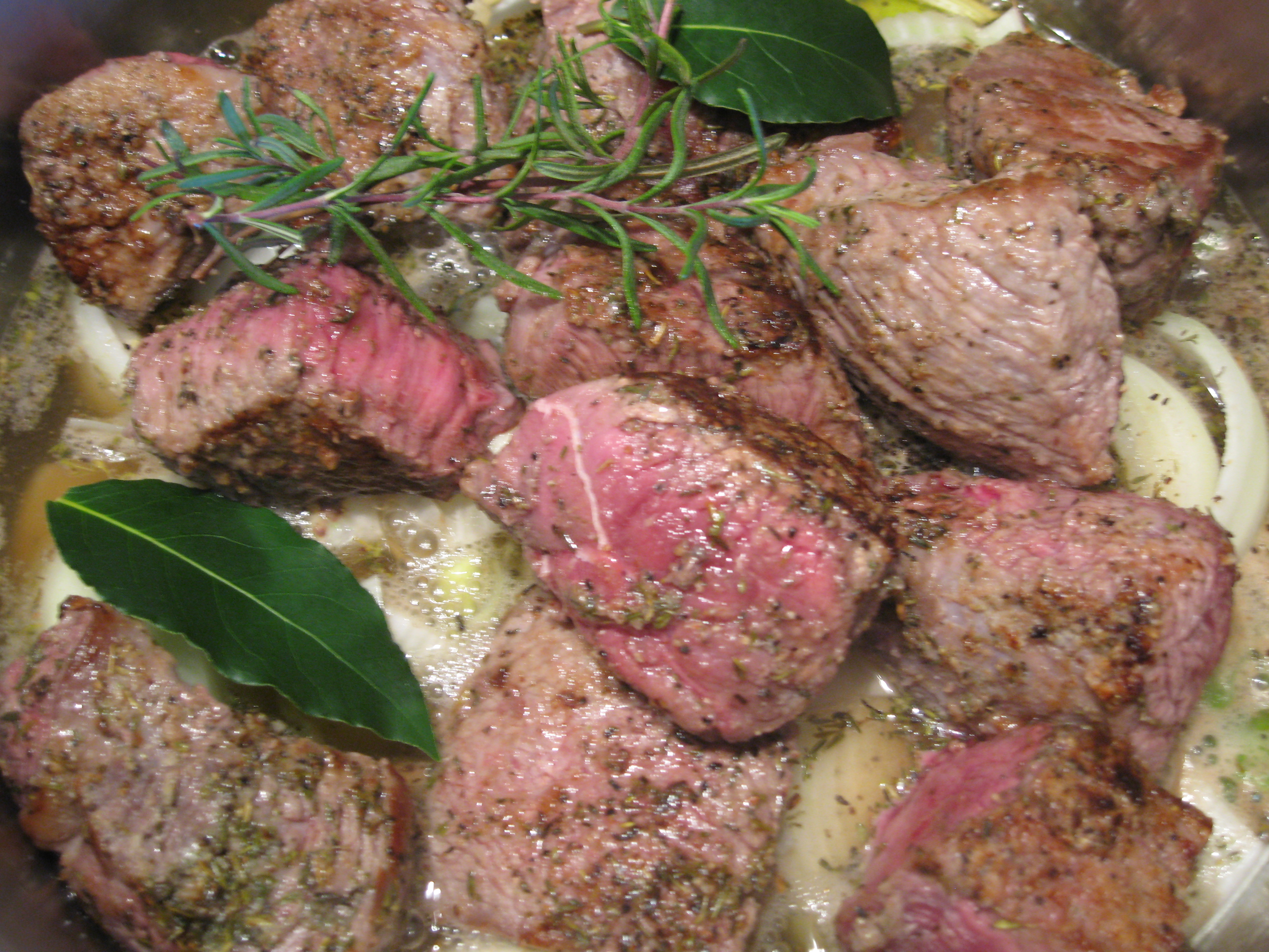 In a mixer combine, a stick of butter, several tablespoons of garlic and about a ¼ cup of Parmesan cheese with a dash of kosher salt. I added a touch of Herbs de Provence and et voila…. herb butter. Portion the mixture into a log using plastic wrap and that which you do not use may be frozen.