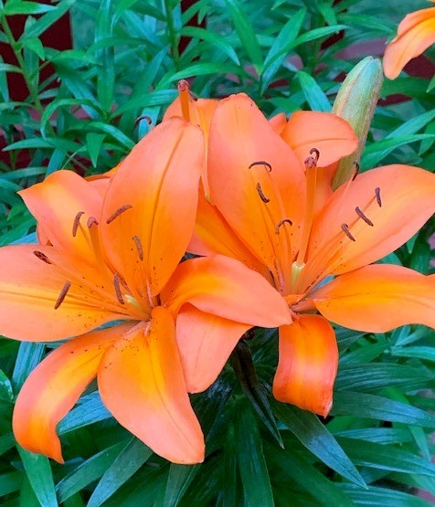 What is it about this time of year that draws one outdoors? Early this morning I took my coffee and camera outside to listen to the neighborhood awaken in the cool crisp air. As I focused on taking photos of the newly bloomed Asian Lilies, squirrels jumped from tree to tree. At first, I thought it was a huge buck walking through the woods or a rather large man, but after focusing on the area where branches were falling, I saw the furry tails of these creatures chasing one another. After lining up a few floral shots, I picked up my coffee and began dreaming of the perfect summer, which by coincidence starts with a morning like this…NO HUMIDITY and temps down to 46 degrees.