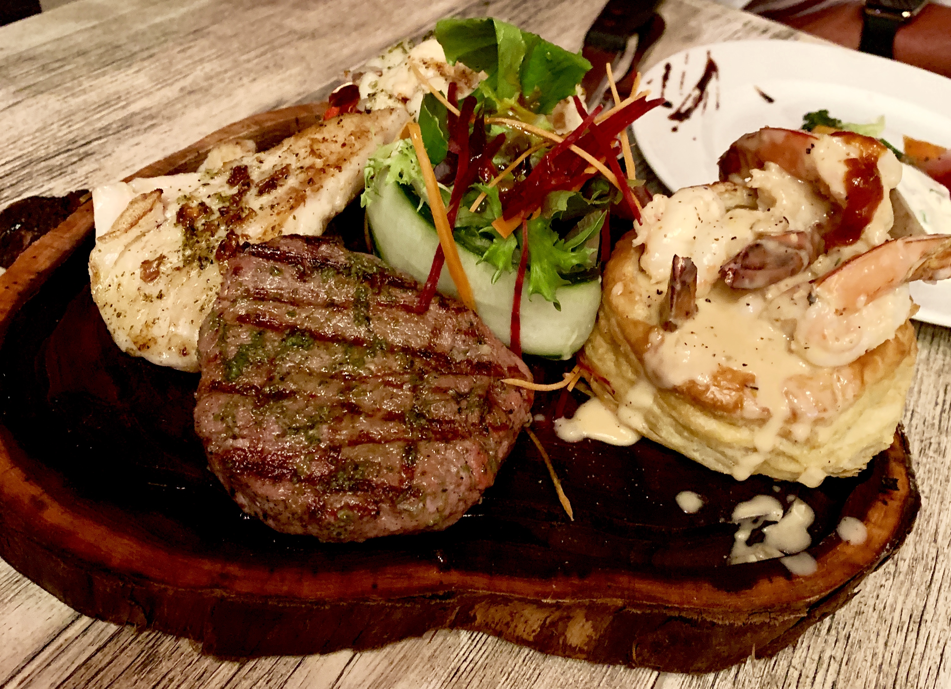 La Galeria Restaurant located in the Marina of Cabo San Lucas serves local style food so, we ordered the special, which was filet mignon, lobster, sea bass and shrimp with vegetables. Our chef prepped the shrimp at the table and shared the recipe as he cooked; using chunks of butter, lots of garlic, chili’s and tequila. I love the use of tequila as a seasoning to enhance flavors or as an afternoon sip.