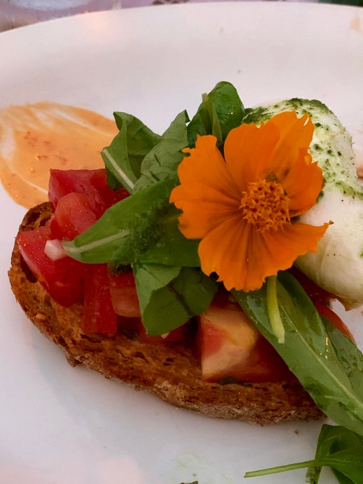 Their edible flowers and herbs are grown in areas tucked around the restaurant. And, the band played at bit of rhythm and blues to country music in a most creative style.