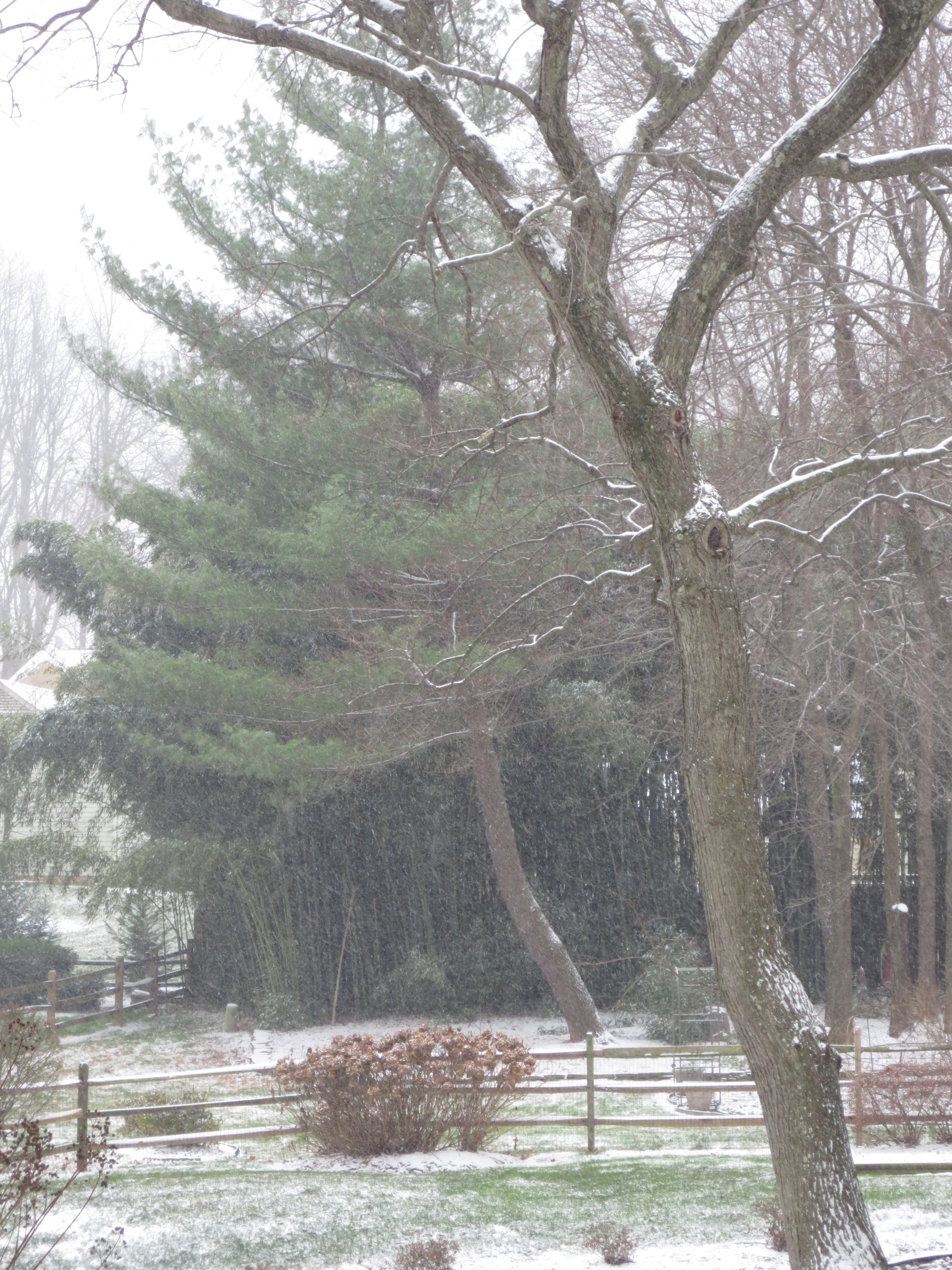 The concentration of the storm around 9:00 this morning, look at the ice bending the bamboo plants in the background.