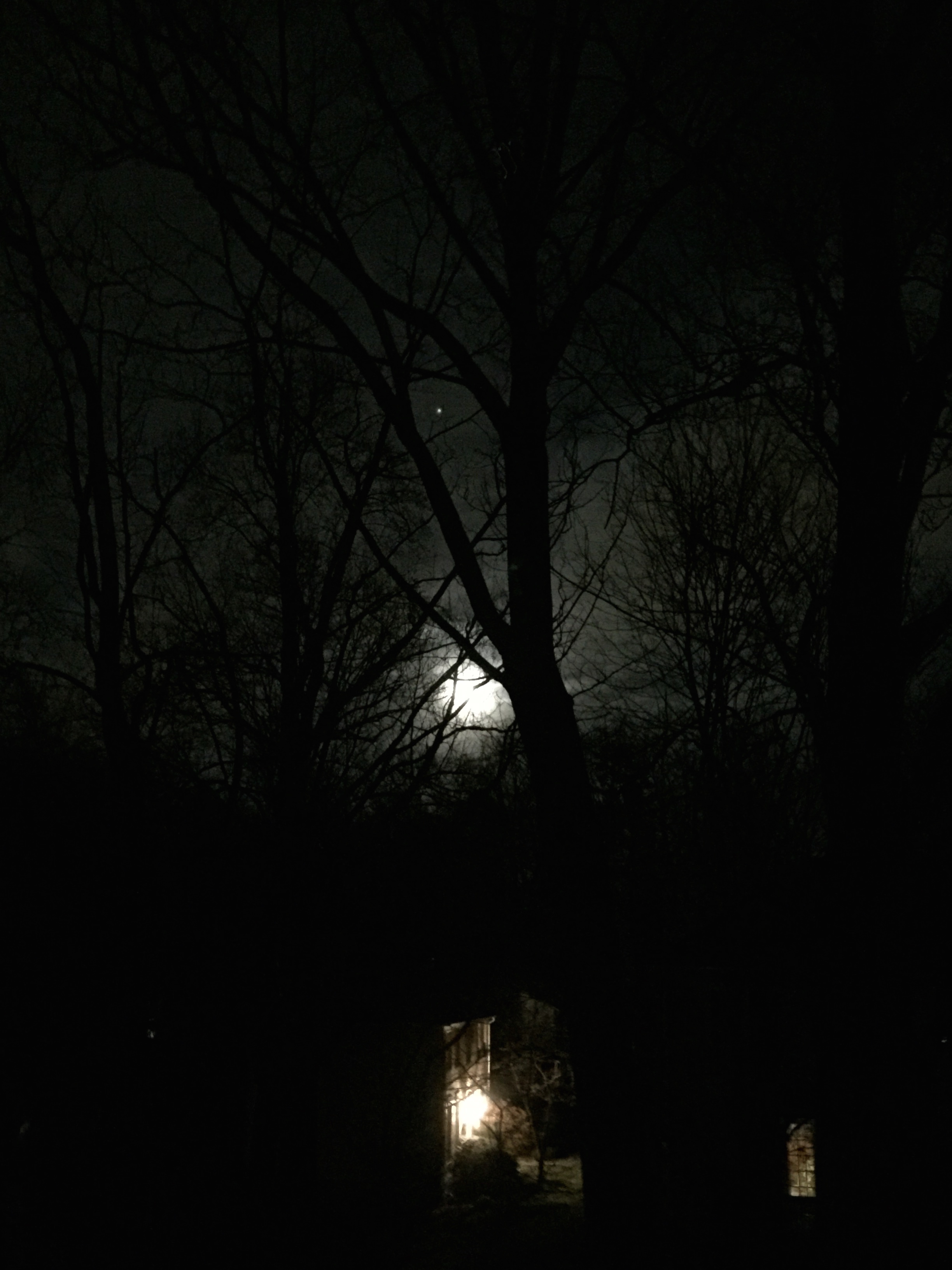 Here is an absolutely gorgeous photo taken from my bedroom window on February 4th, the night of the full moon is coupled with Jupiter. The sky was very cloudy, as we were expecting flurries and snow that evening.