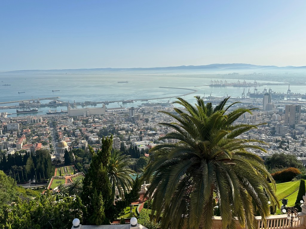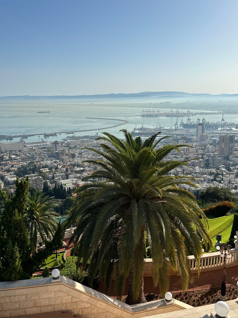 Located in northwestern Israel, Haifa is situated on the slopes of Mount Carmel and faces the Mediterranean Sea. Our first stop was to the Bahai Gardenss that consisted of concentric circles filled with flowers, small trees, small sculptures, water fountains and pools. The sides of the gardens are wooded areas designed to house wildlife and to cut down on urban noise.