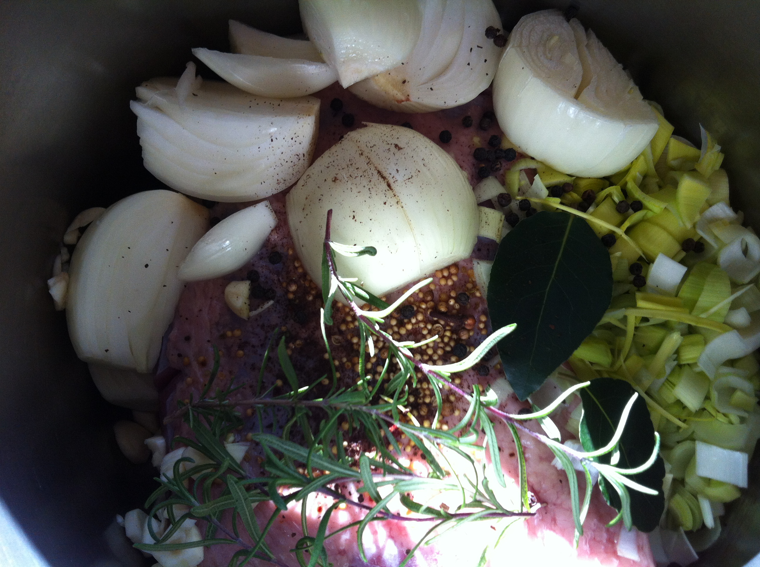{Seasonal savories & spices used to cook the holiday meal; onions, bay leaves, leeks, sage and rosemary from the Heath Garden}