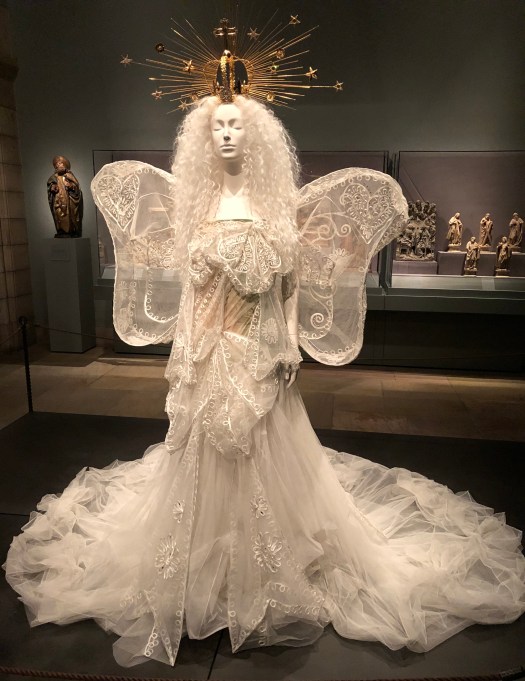 The first to check in was Sean at The Met on Fifth with an exhibition review on Fashion and the Catholic Imagination. The influence of catholic imagery on designers is the largest show the Costume Institute has staged, and it’s in two sites at the Met Fifth Avenue, and the Cloisters. The garments chosen specifically relate to religious objects in the collection.